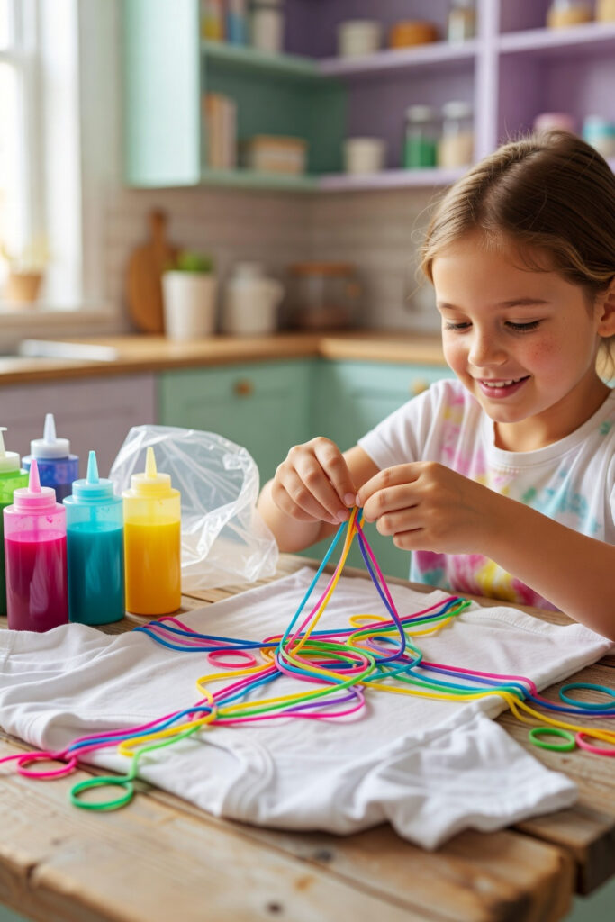 Tie-dye never gets old, and kids absolutely lose it when they unfold the rubber bands and see what they made.